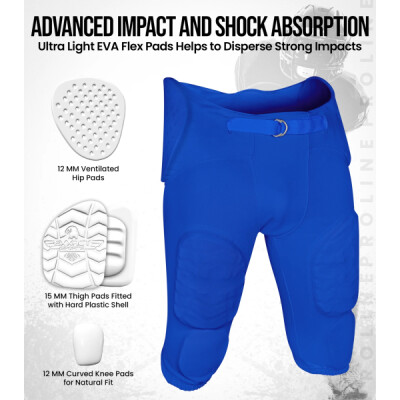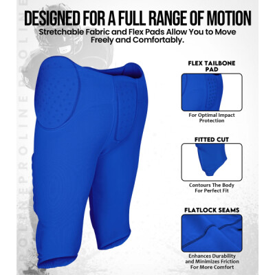 The Proline Men Integrated Football Pants with 7 Flex Pads in royal blue from Exxact Sports will help you perform at a higher level. These premium adult football trousers are made especially for players who value both on-field performance and safety.